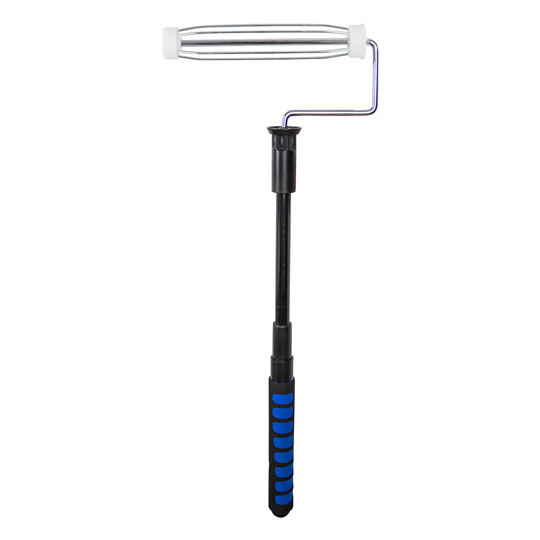 It extends from 43cm to 66.5cm, allowing you to paint those hard-to-reach areas without the added physical strain. It is less bulky than an extension pole, enabling you to have a bit more control when painting. The frame is heavy-duty and has a 5-wire cage made of 3mm zinc-plated rods. As well as a rust-resistant 8mm chrome-plated rod. This sits on top of a soft foam handle that is comfortable when held for extended periods of time.